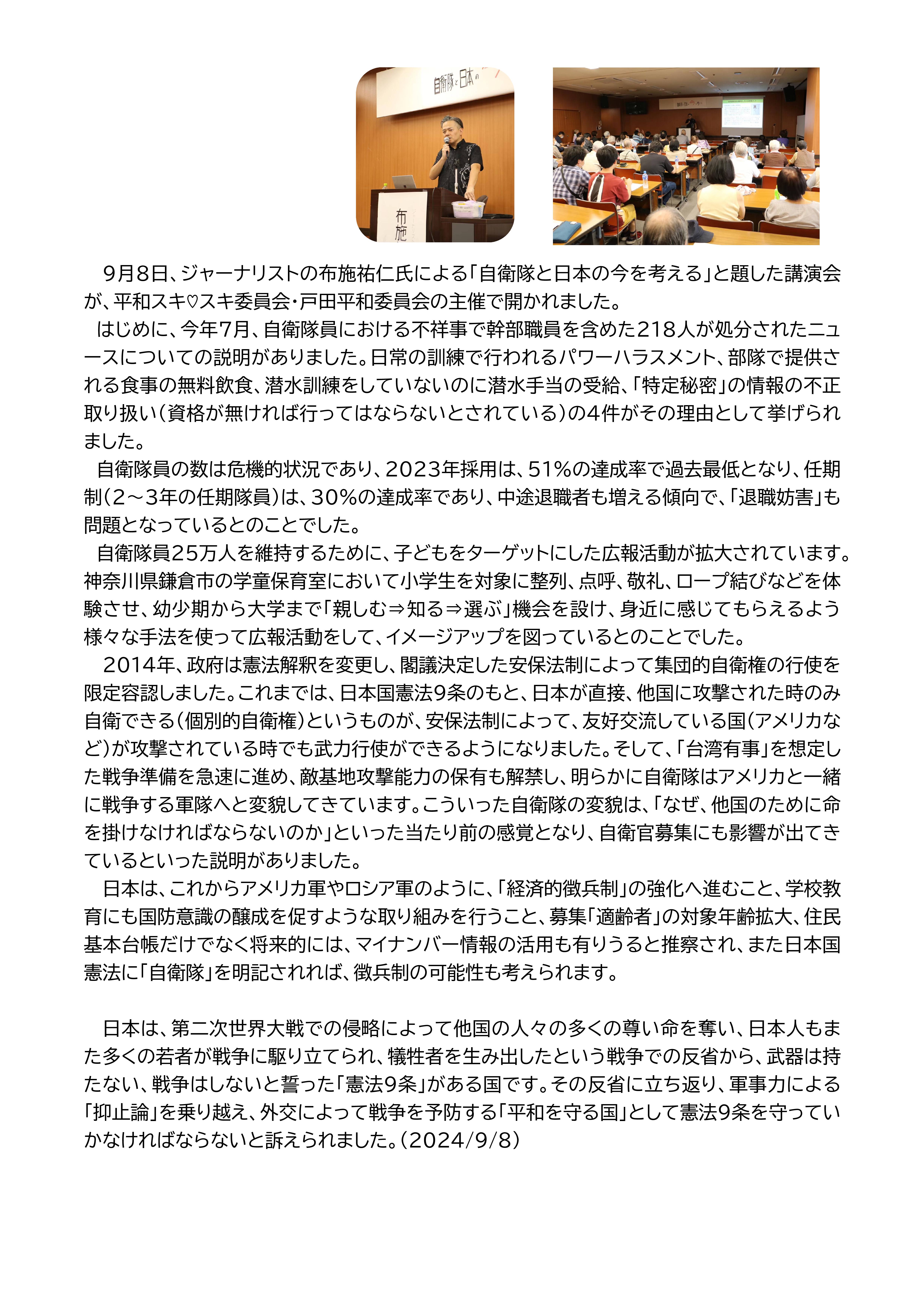 二名の方から、「民主戸田№1703」に切実な投稿を頂きました。転載します。